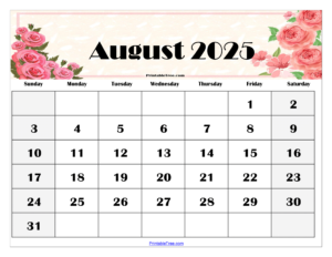 August 2025 Calendar Free Printable PDF XLS and PNG