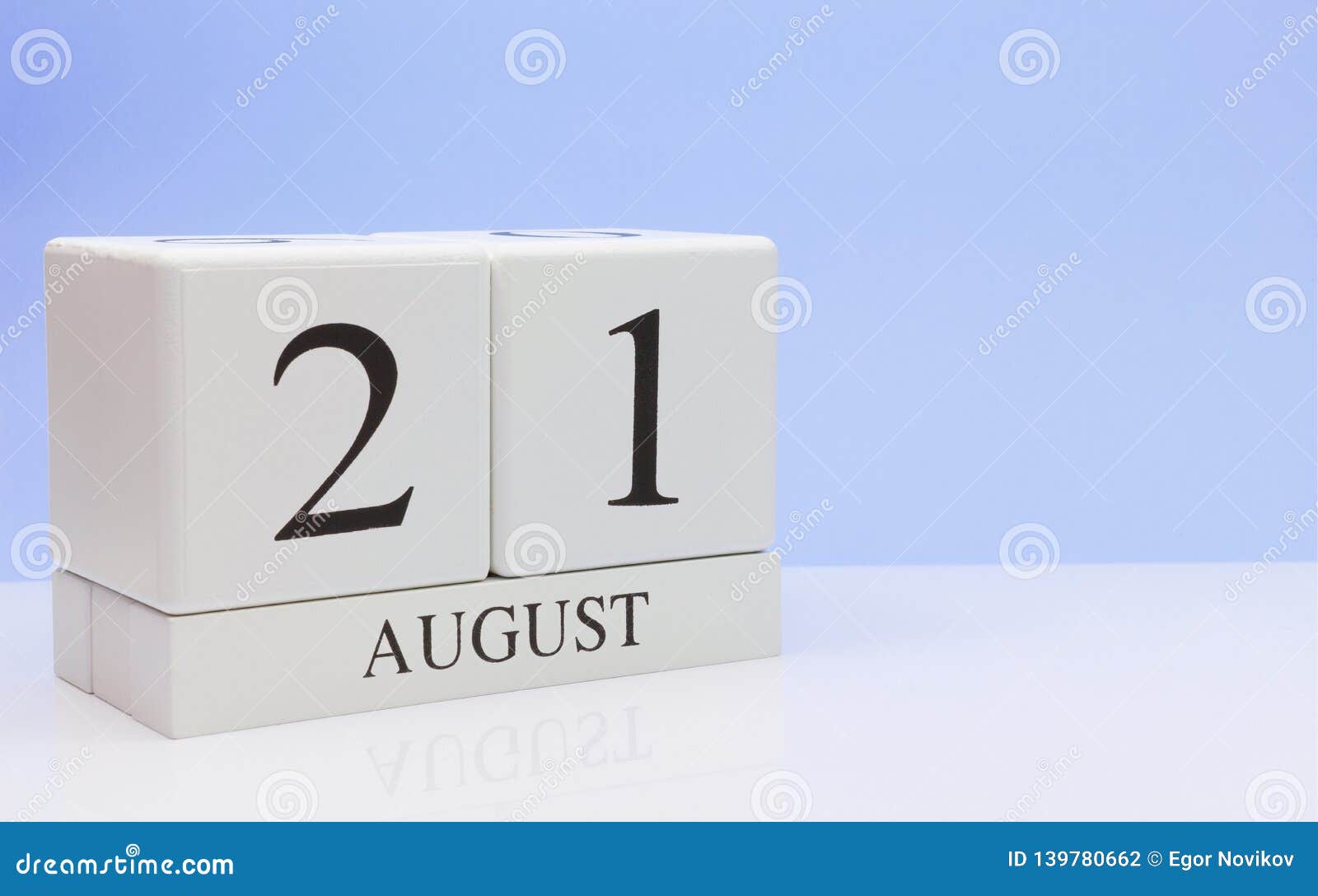 August 21st Day 21 of Month daily Calendar on White Table with