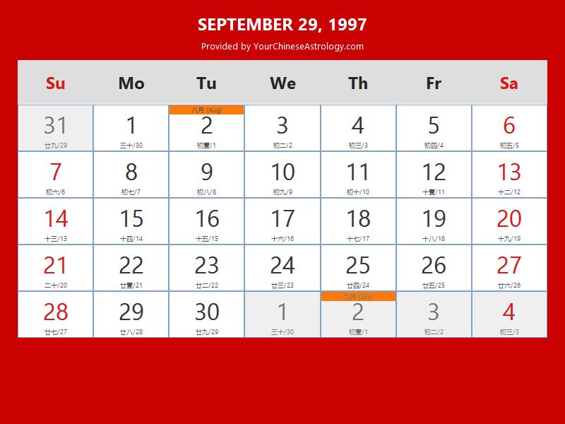 Chinese Calendar Sep 29 1997: Auspicious Things to Do and Hours Bazi