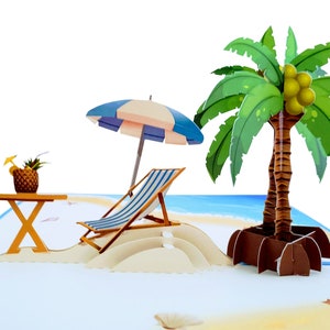 Stunning Oceanfront View Pop up Greeting Card Palms Tree Beach Relax