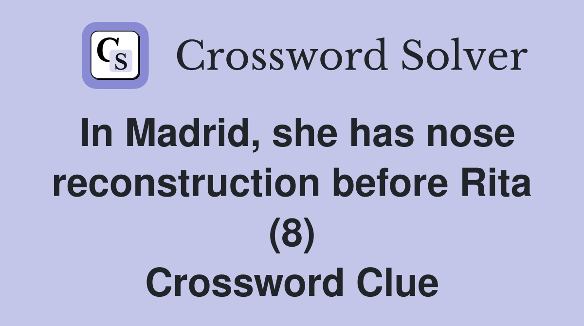 In Madrid she has nose reconstruction before Rita (8) Crossword Clue