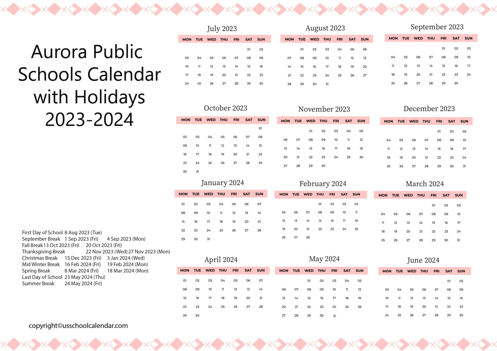 Aurora Public Schools Calendar 2023 2024 (Holiday Breaks)