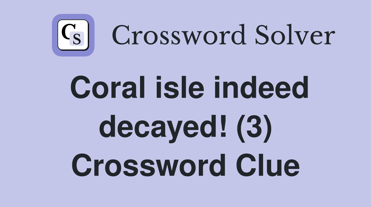Coral isle indeed decayed (3) Crossword Clue Answers Crossword Solver