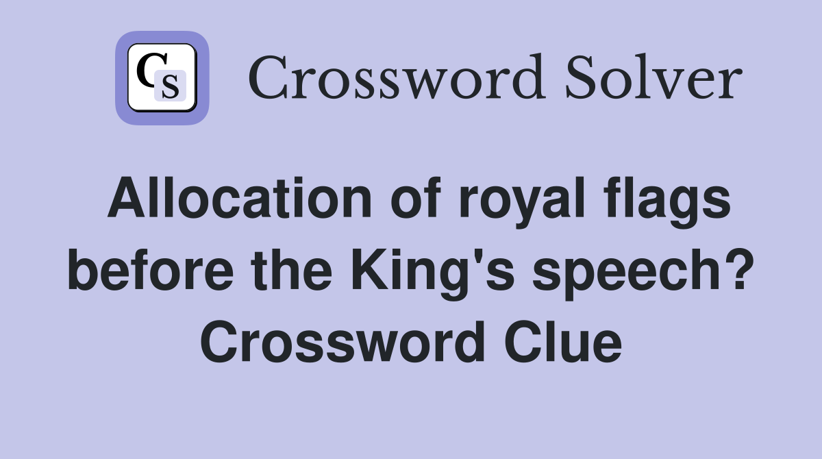 Allocation of royal flags before the King #39 s speech? Crossword Clue
