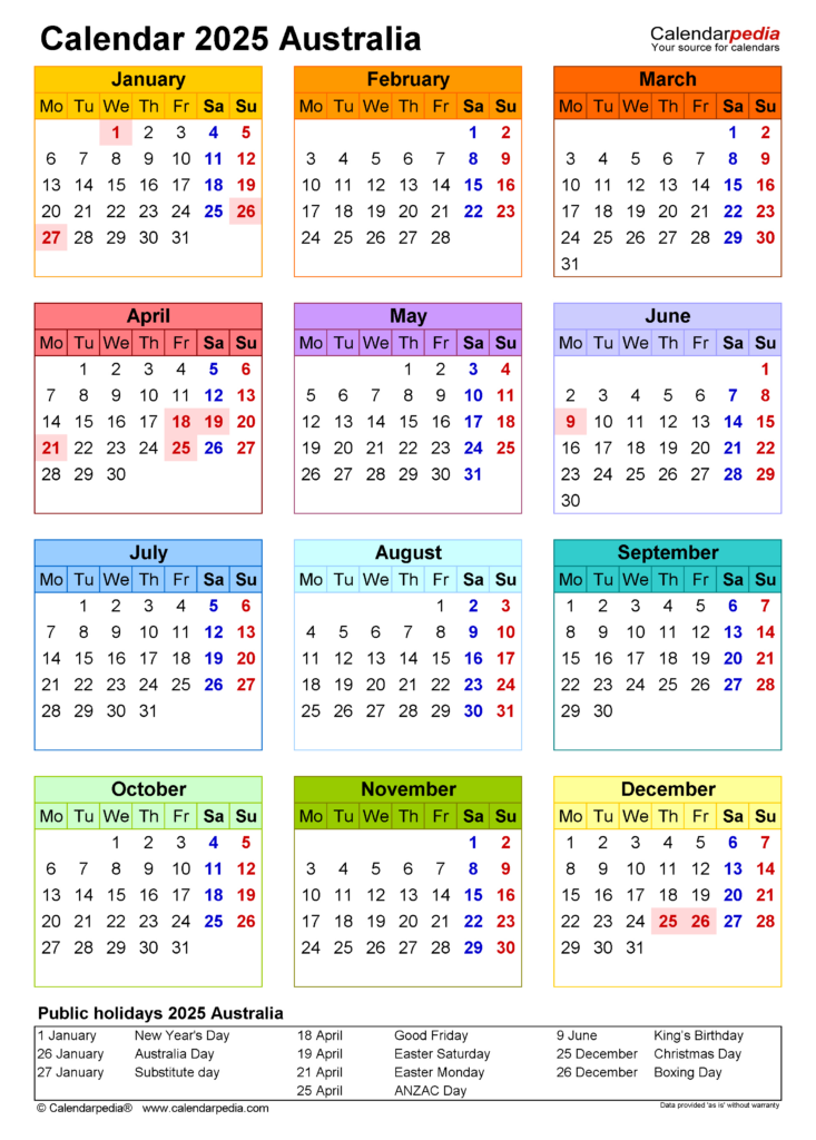 2025 Calendar Australia Printable Calendars AT A GLANCE