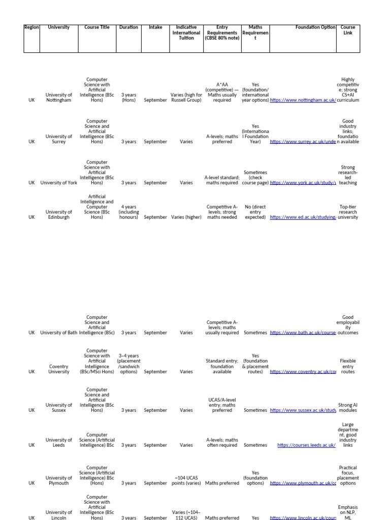 Copy of UK Australia CS AI Comparison(1) PDF Bachelor Of Science