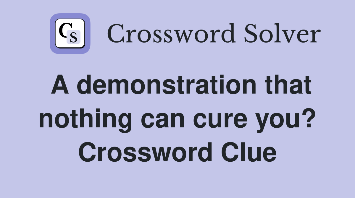 A demonstration that nothing can cure you? Crossword Clue Answers