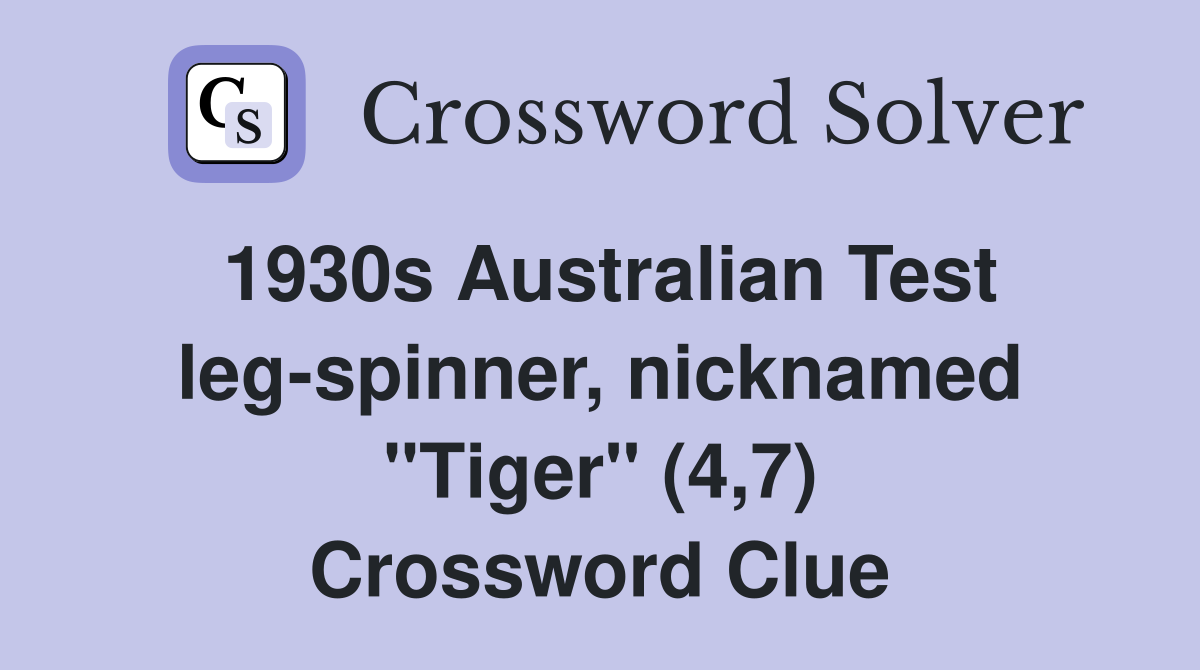 1930s Australian Test leg spinner nicknamed quot Tiger quot (4 7) Crossword