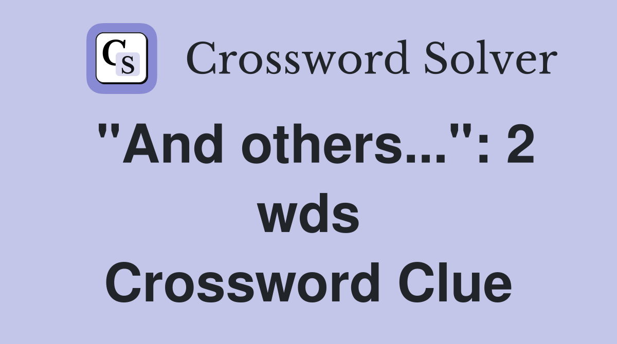quot And others quot : 2 wds Crossword Clue Answers Crossword Solver