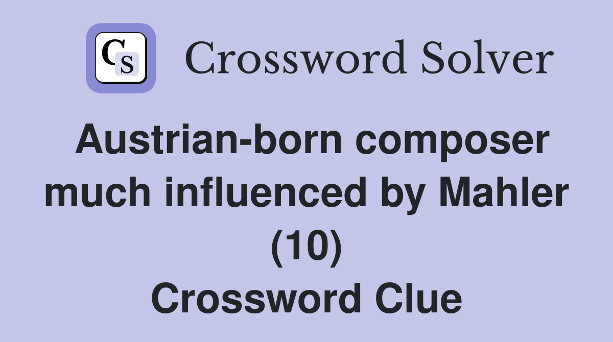Austrian born composer much influenced by Mahler (10) Crossword Clue