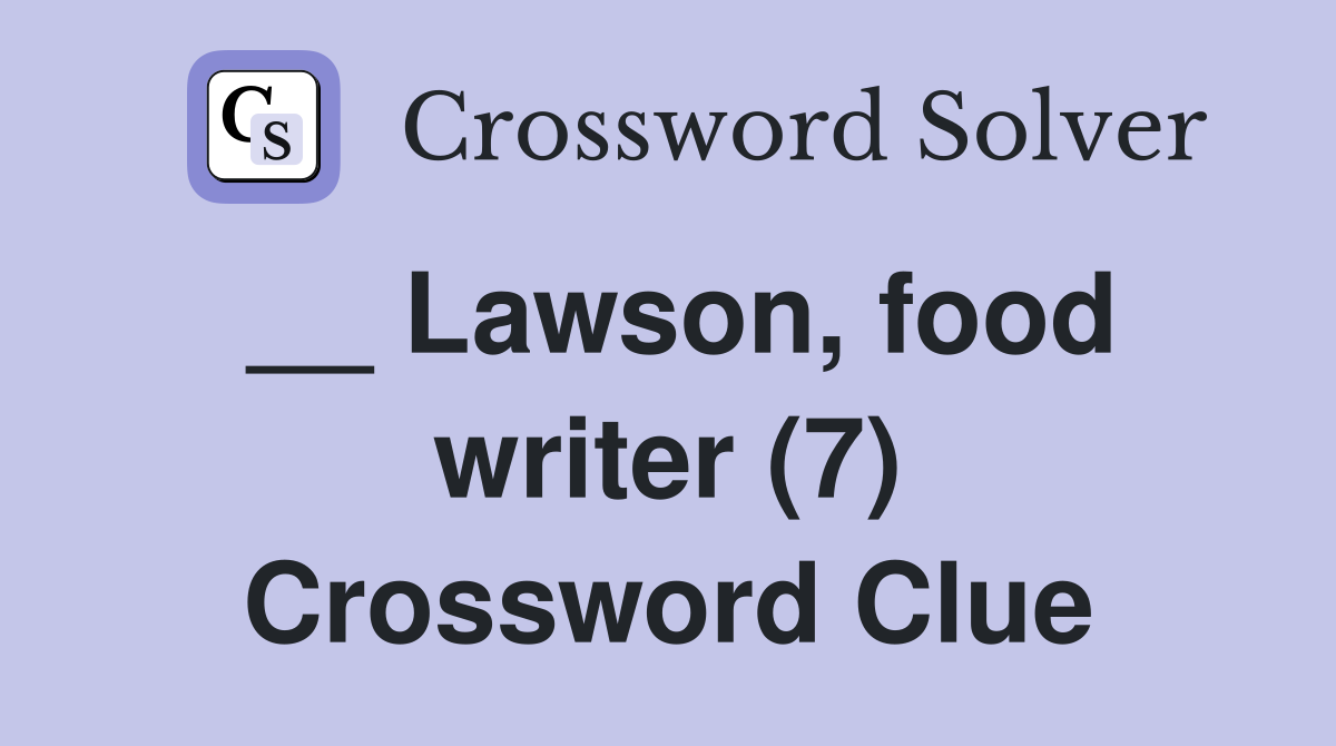 Lawson food writer (7) Crossword Clue Answers Crossword Solver