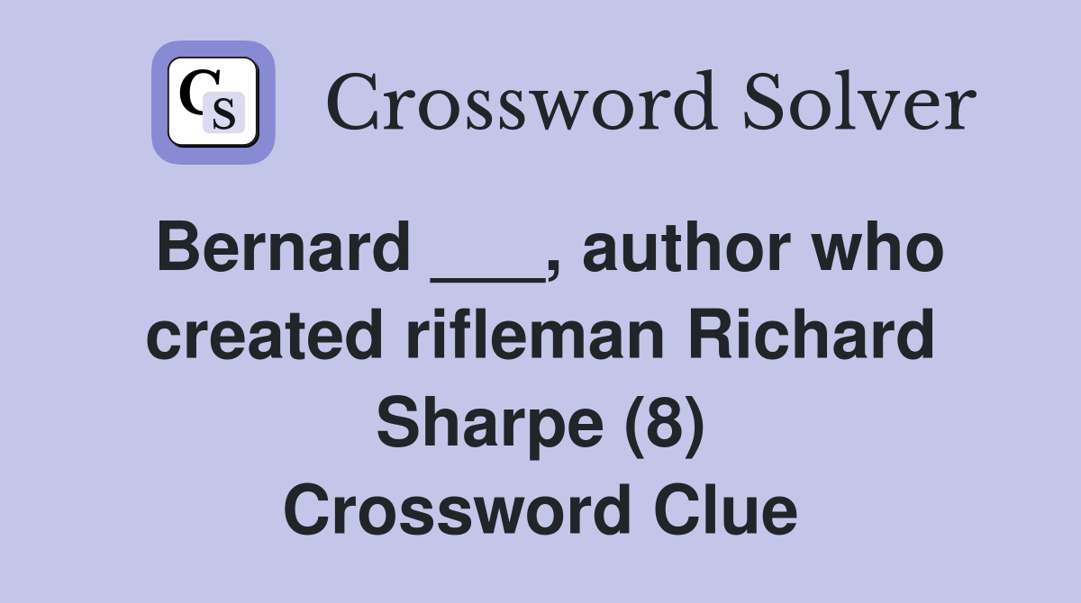 Bernard author who created rifleman Richard Sharpe (8) Crossword