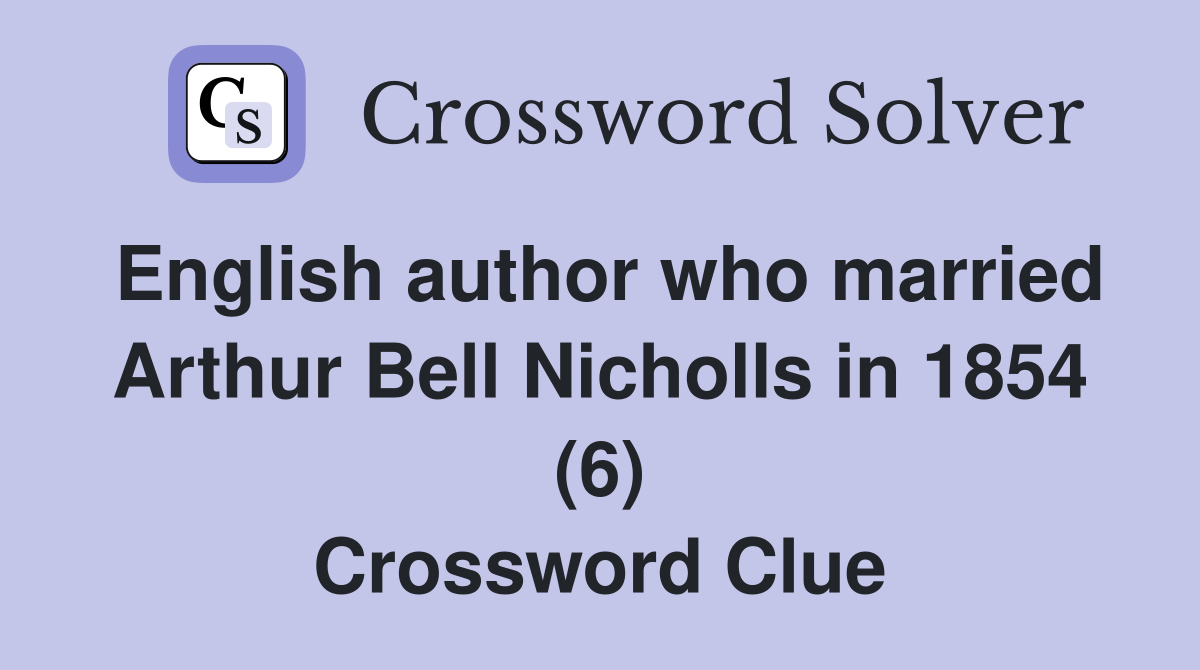 English author who married Arthur Bell Nicholls in 1854 (6) Crossword