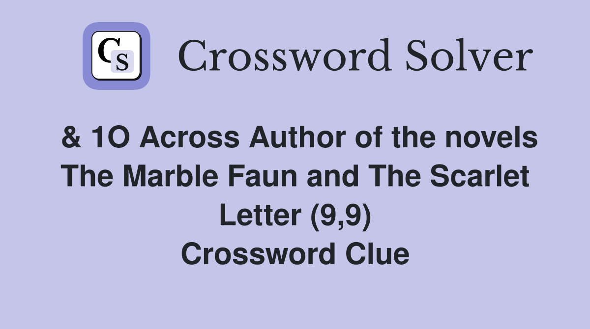 1O Across Author of the novels The Marble Faun and The Scarlet Letter