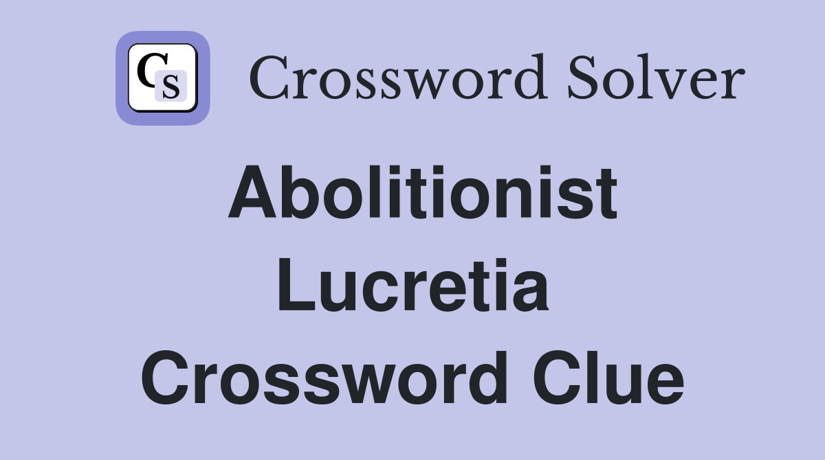 Abolitionist Lucretia Crossword Clue Answers Crossword Solver