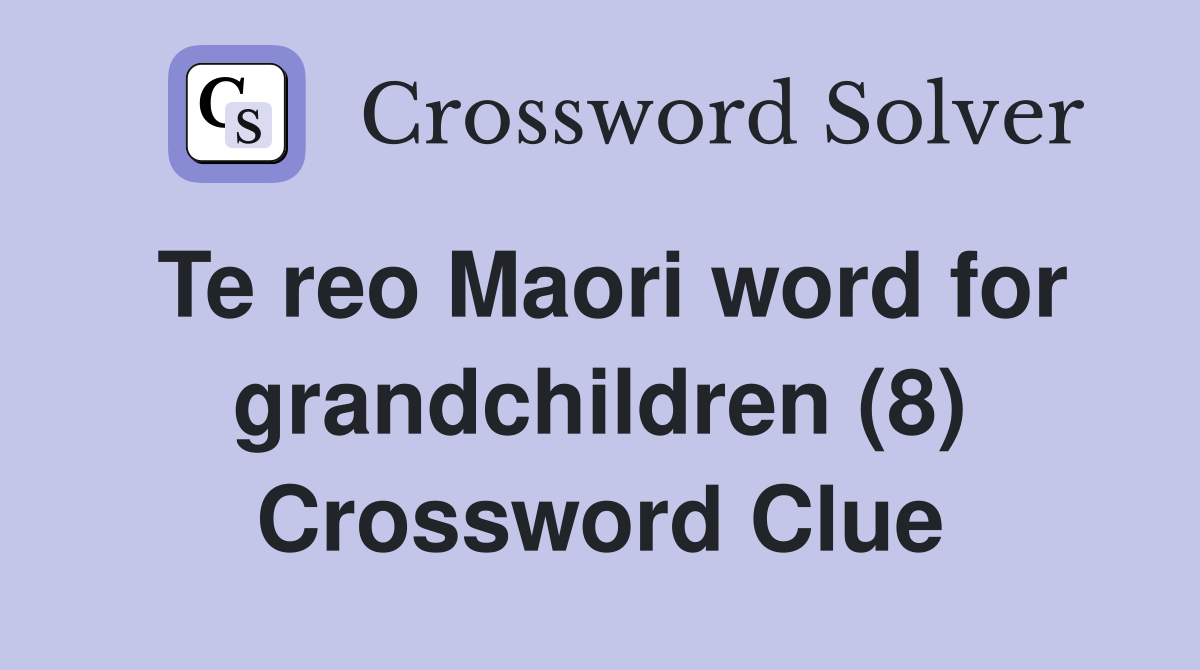 Te reo Maori word for grandchildren (8) Crossword Clue Answers