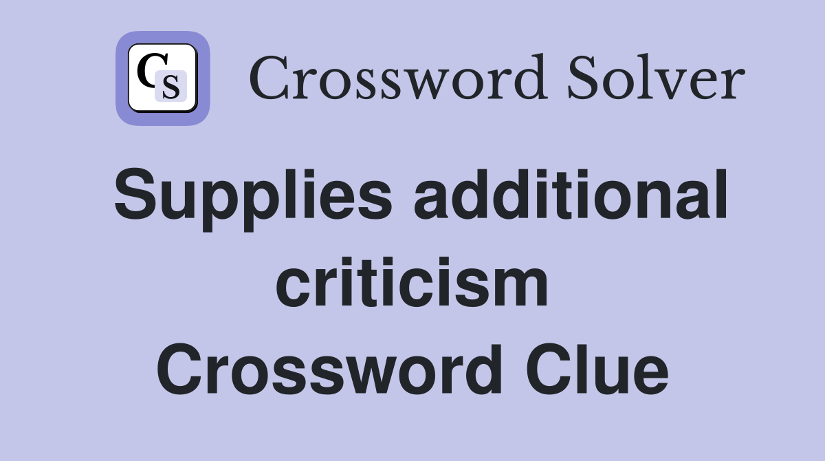 Supplies additional criticism Crossword Clue Answers Crossword Solver
