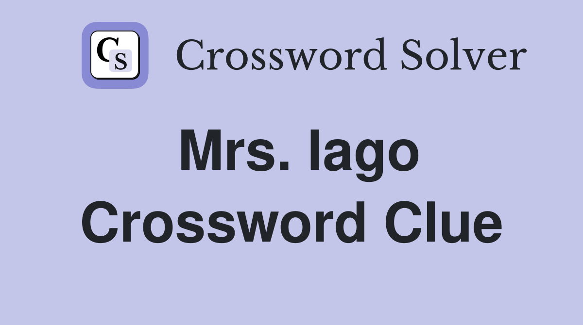 Mrs Iago Crossword Clue Answers Crossword Solver