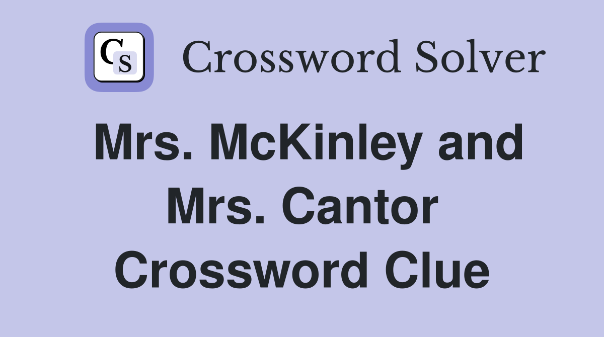 Mrs McKinley and Mrs Cantor Crossword Clue Answers Crossword Solver