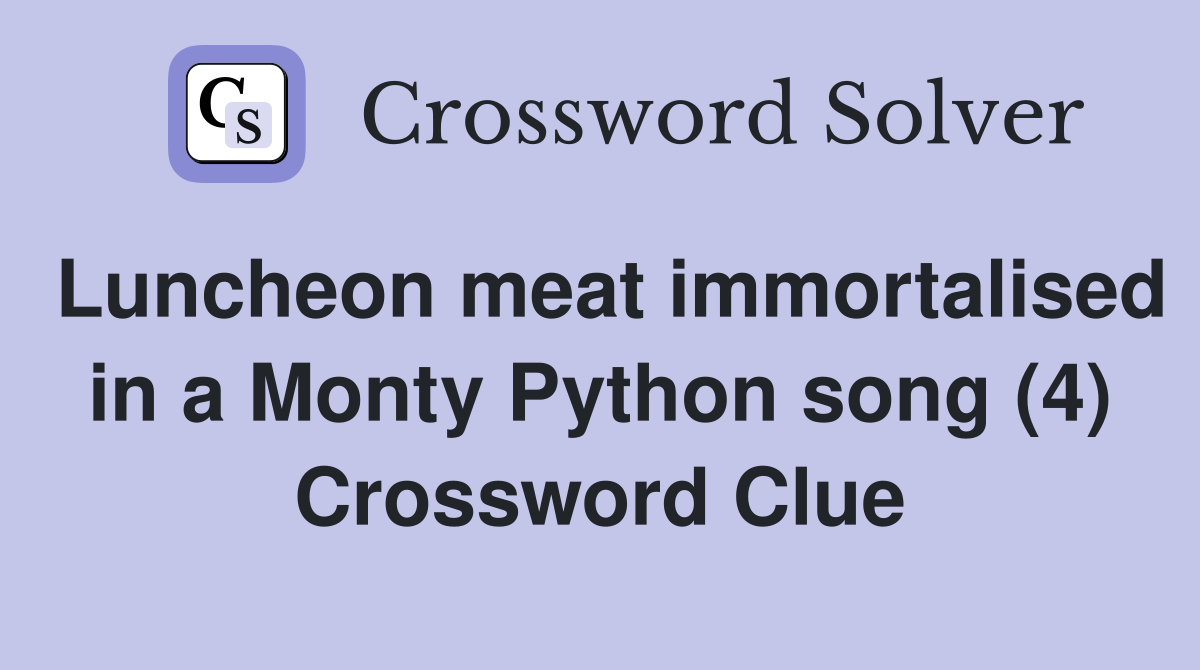 Luncheon meat immortalised in a Monty Python song (4) Crossword Clue