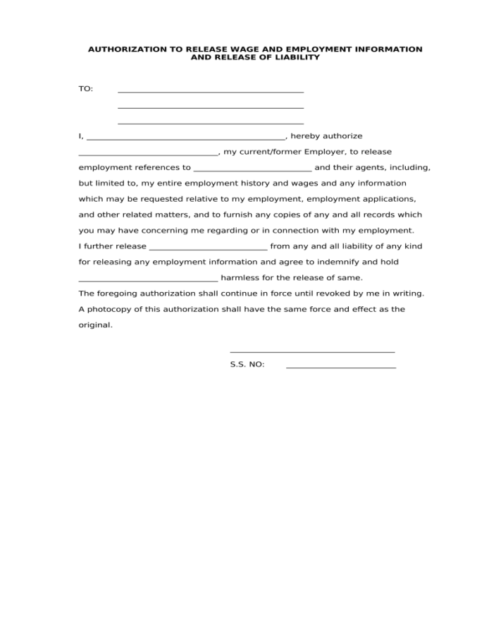 Authorization To Release Information Template