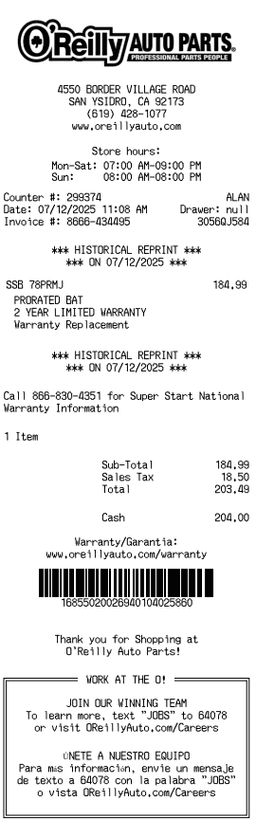 O #39 Reilly Auto Parts Receipt Generator Template Editor