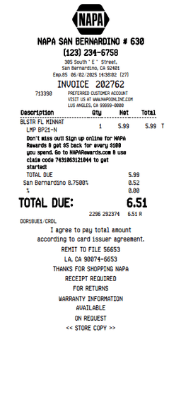 Automotive Receipt Cheap auto parts Automotive Auto parts store
