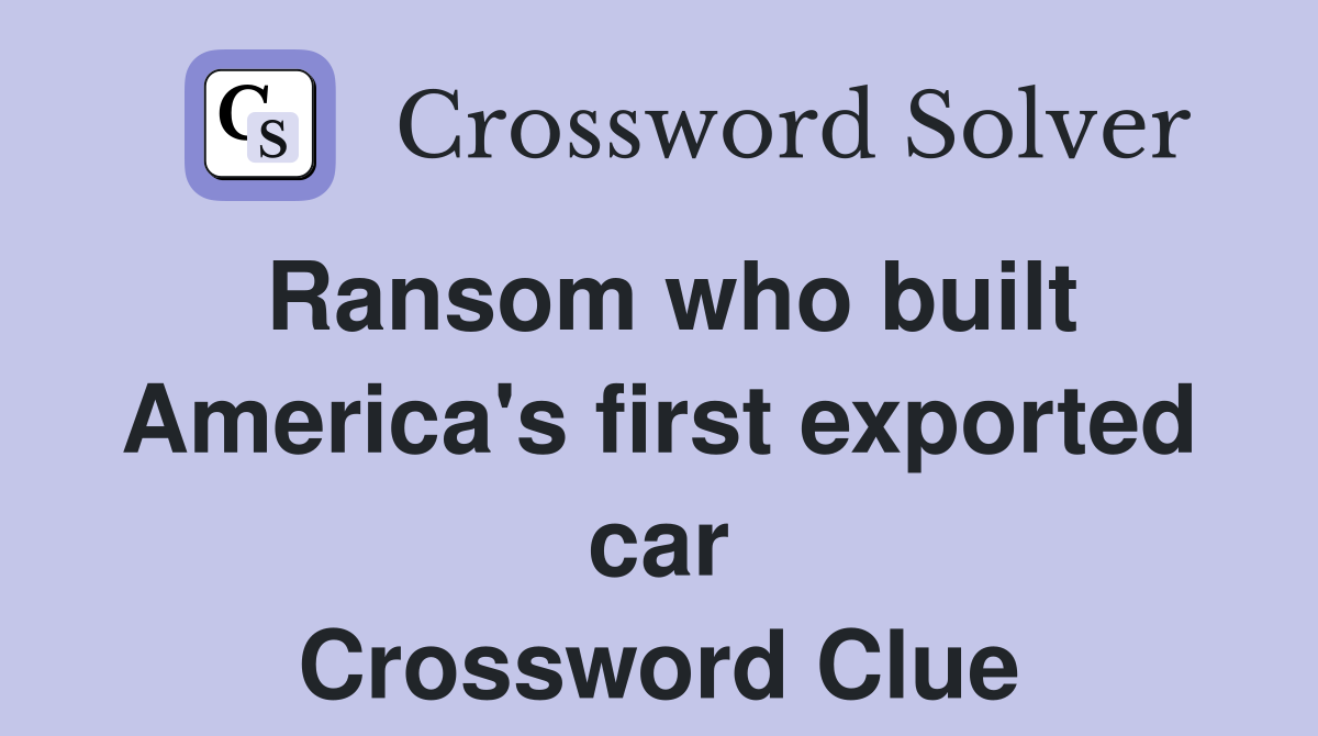 Here are some of the images for Auto Pioneer Ransom Crossword Clue that we found in our website database.