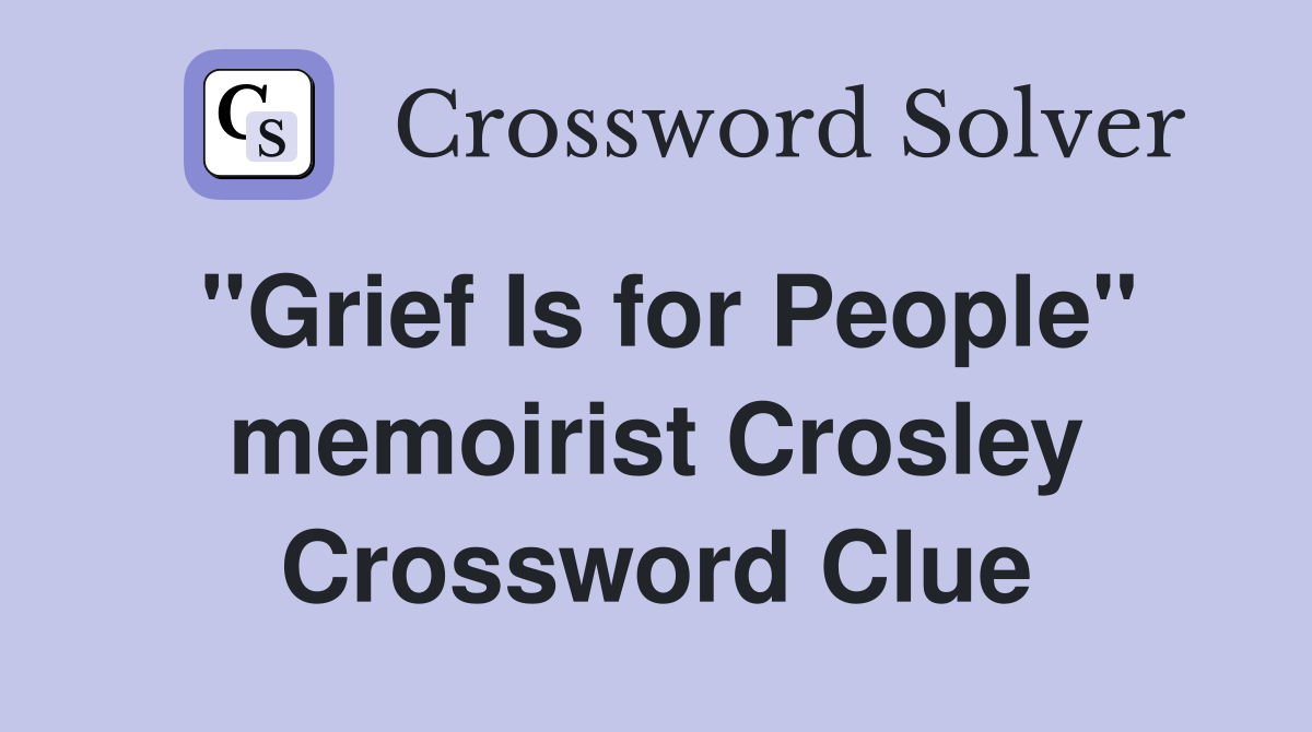 quot Grief Is for People quot memoirist Crosley Crossword Clue Answers