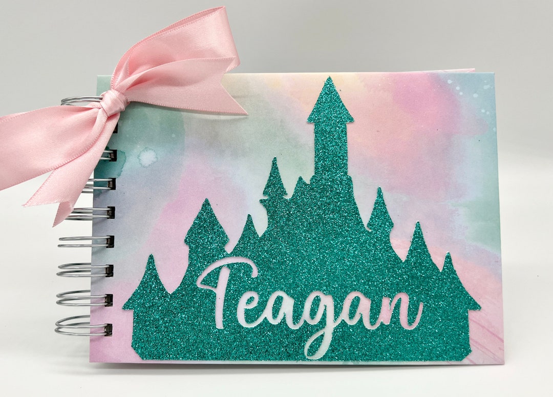 Disney Autograph Book Teal Glitter Castle on Watercolor Princess