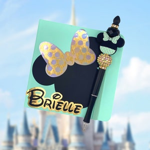 Mint/gold Minnie Inspired Personalized Autograph Book With Matching Pen