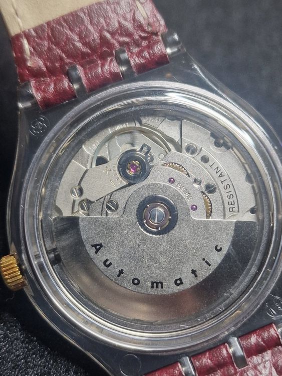 Swatch Automatic SAM100 Rubin (1991) mit Box Papieren (Neu und