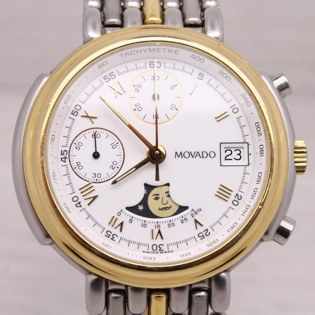 1990 #39 S MOVADO AUTOMATIC Triple Date Calendar Moonphase Mens 38mm Watch