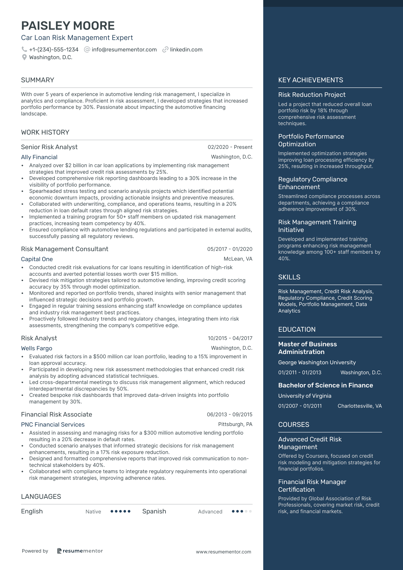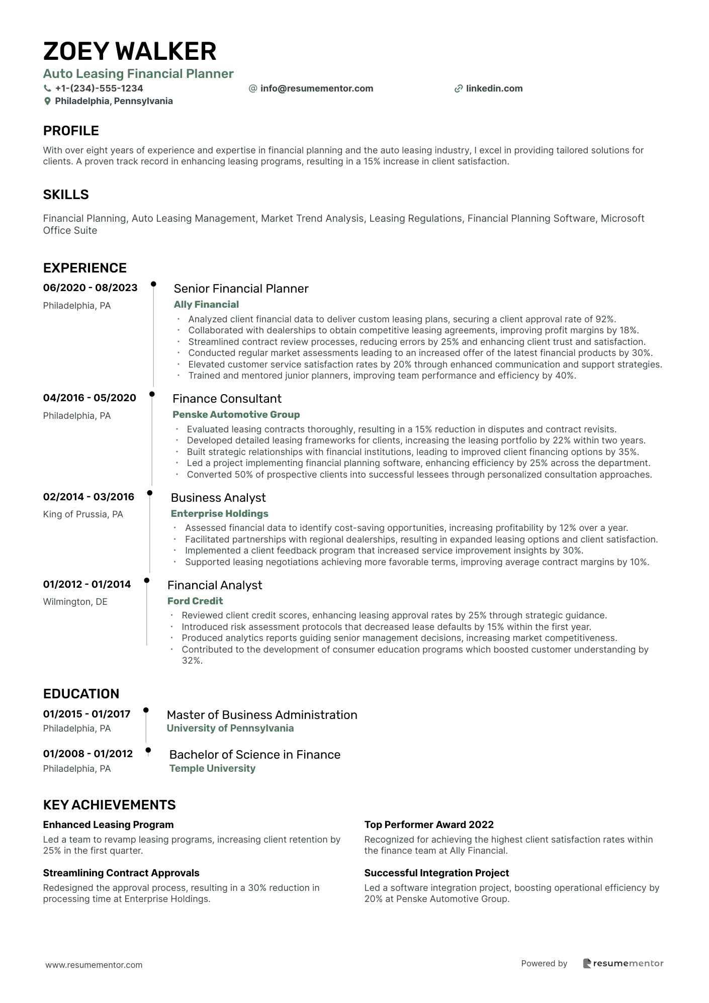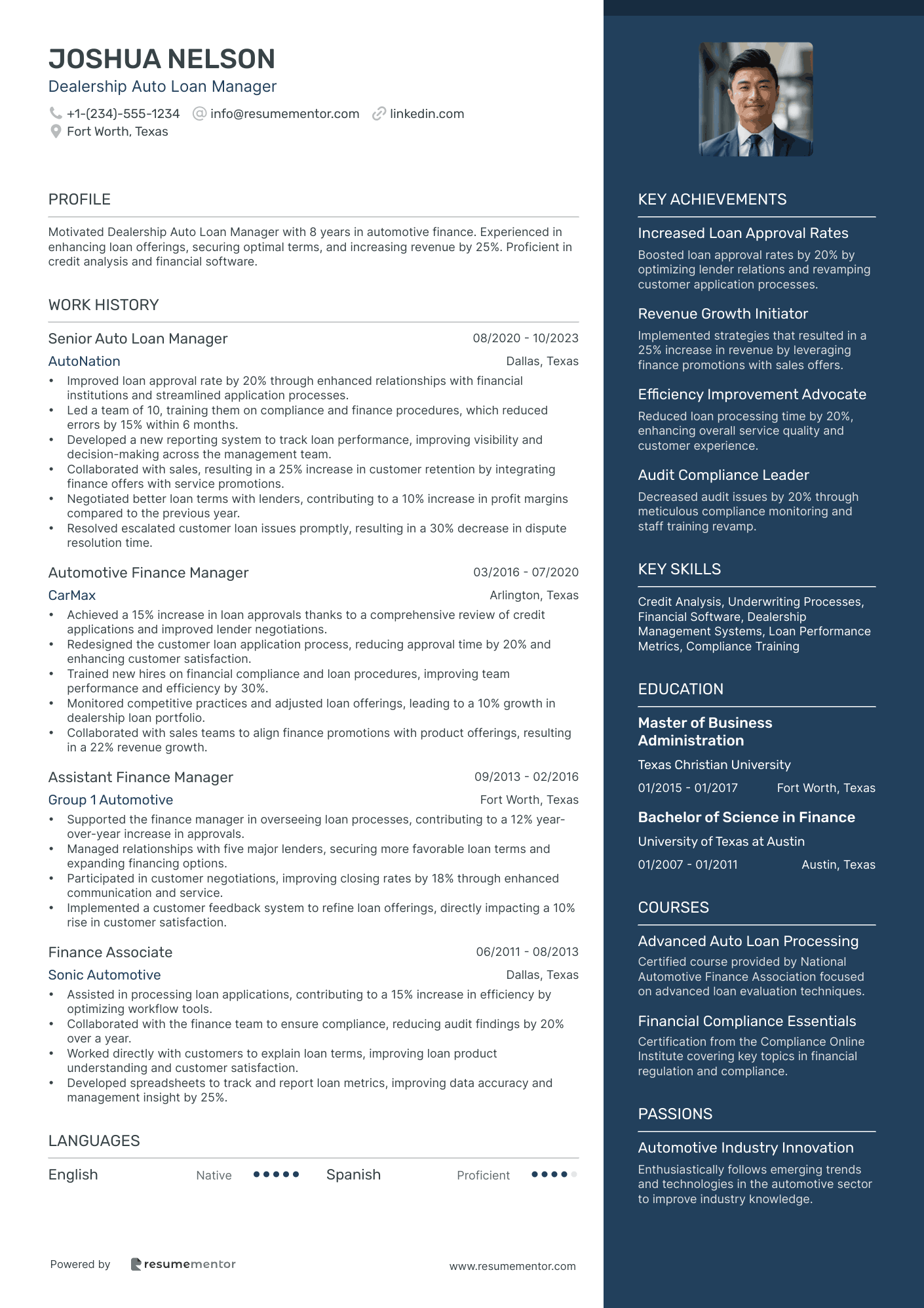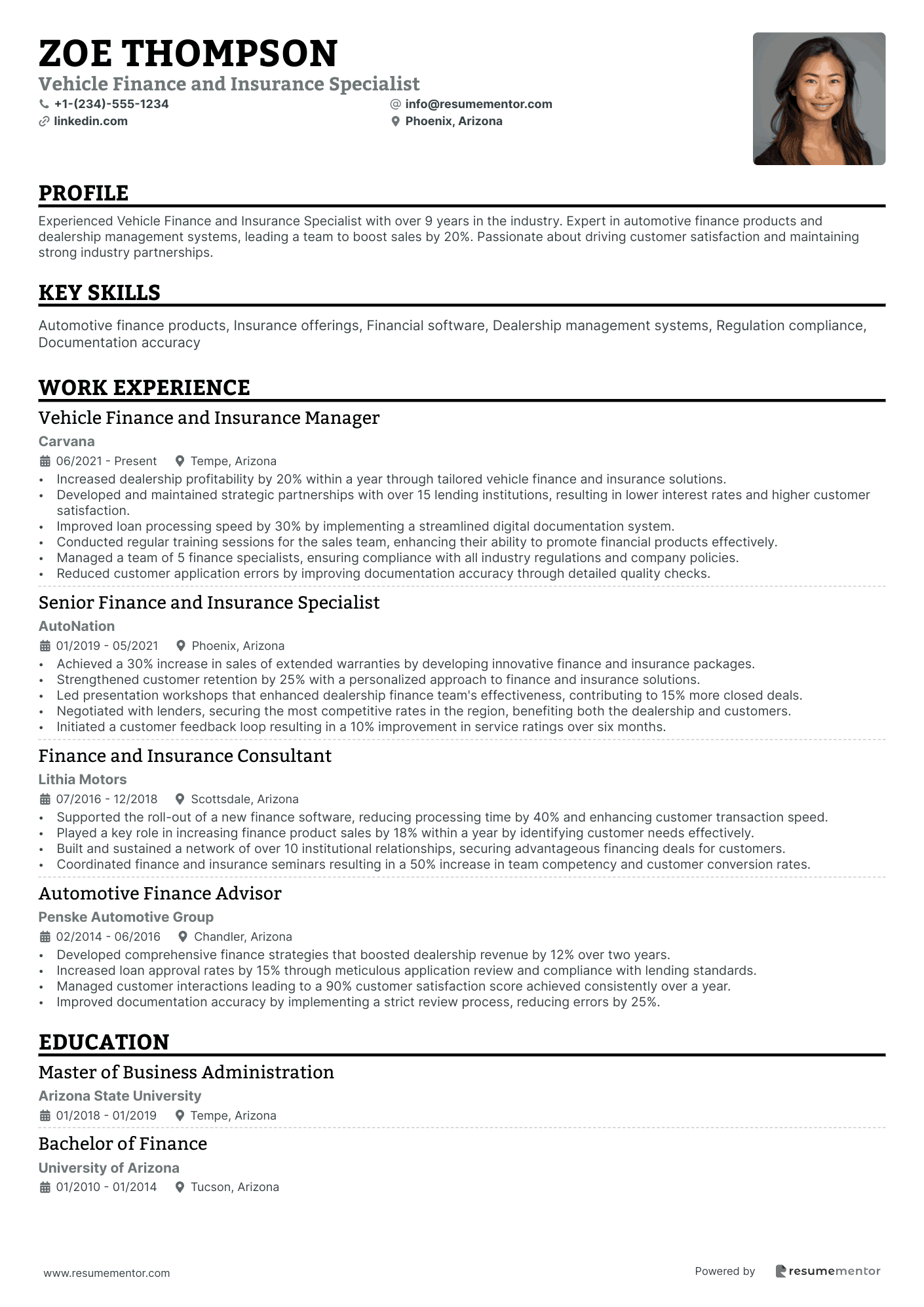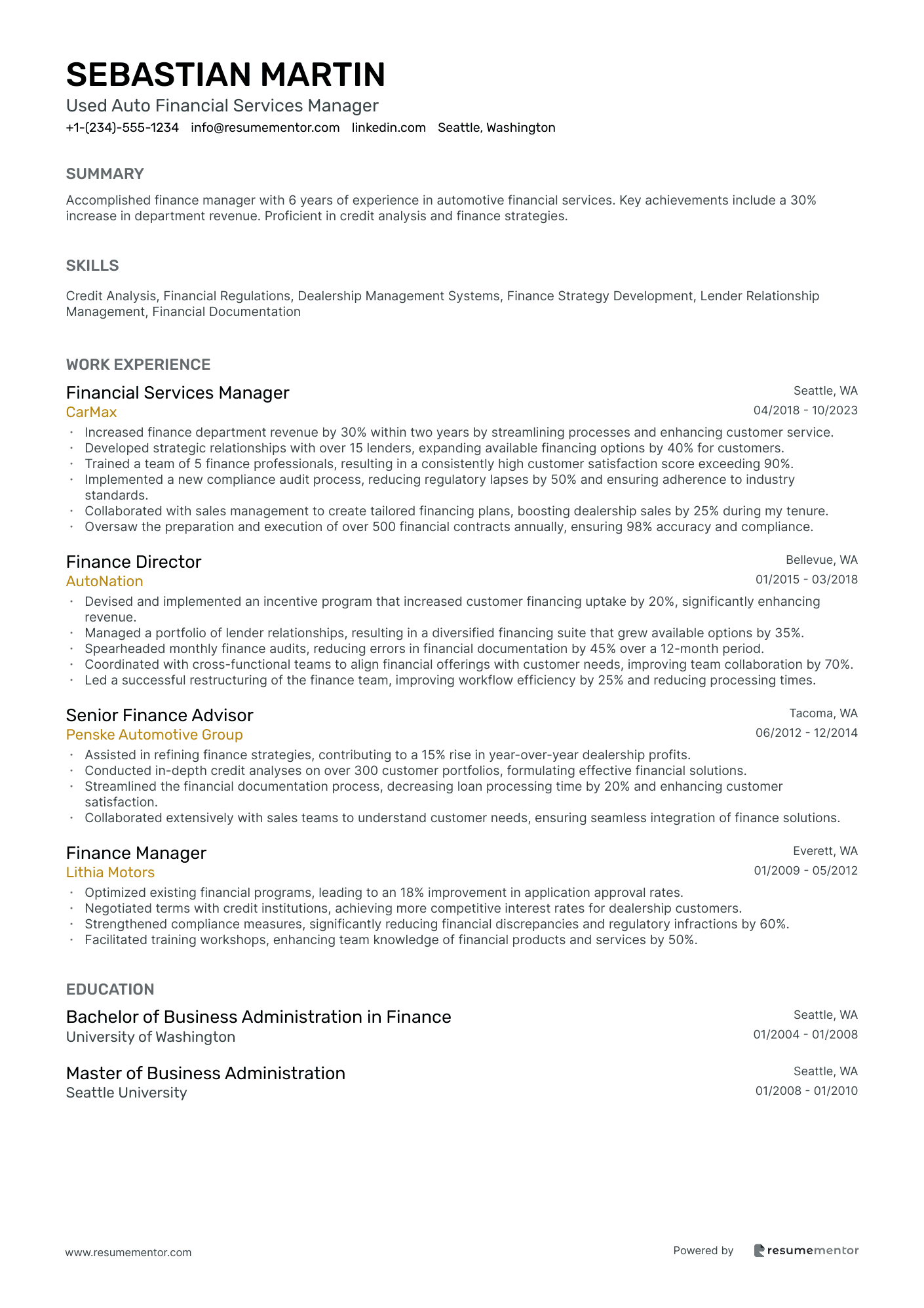 Automotive Finance Manager Resume Example Free to Edit ATS Friendly