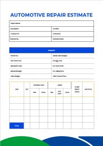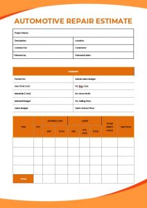 Automotive Repair Estimate Template