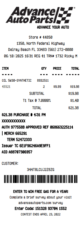 Autozone Receipt Template