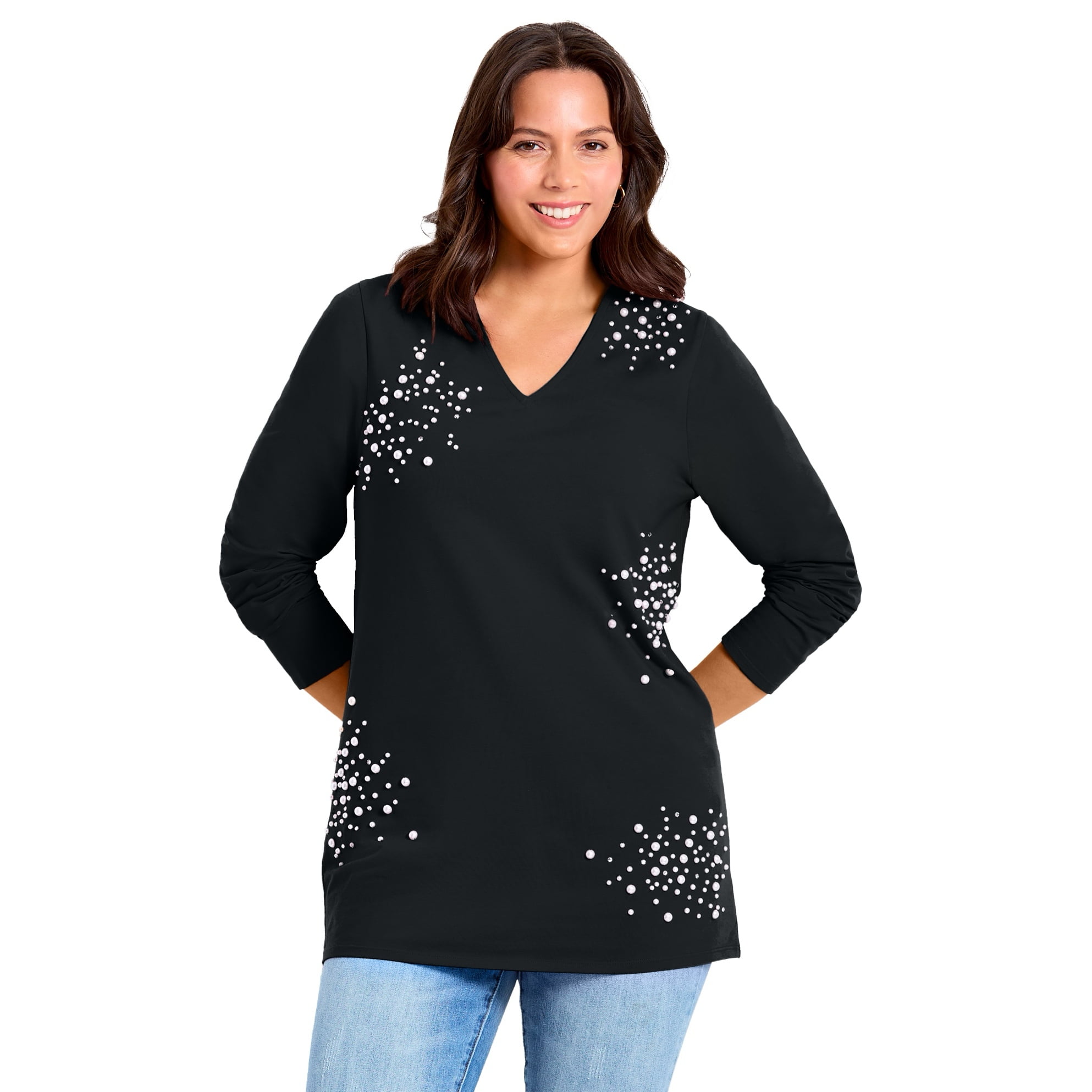 Avenue Women #39 s Plus Size Embellished V Neck Tunic Walmart com