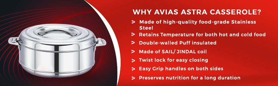 Buy AVIAS Astra Double Wall Insulated Stainless Steel Casserole 2500ml