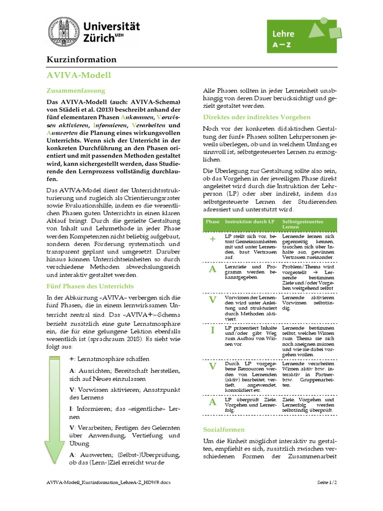 AVIVA Modell Kurzinformation LehreA Z HDWB PDF