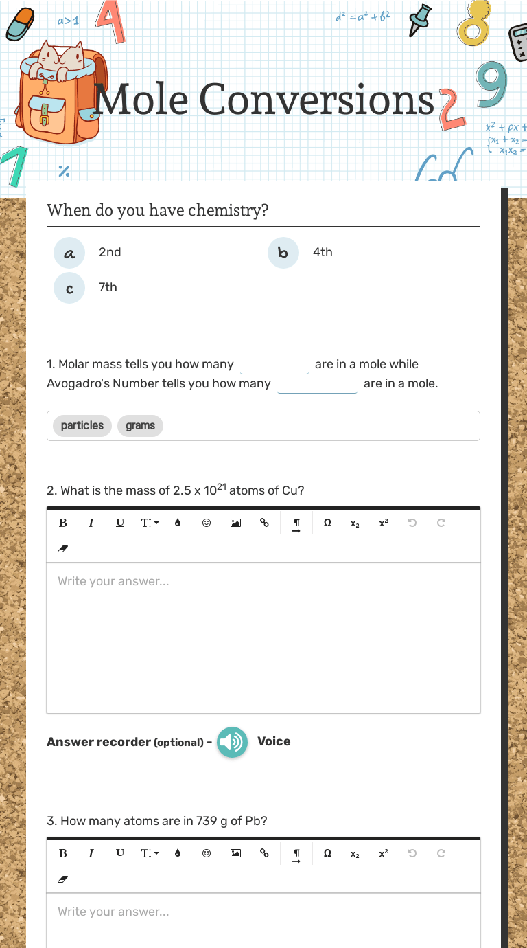 Mole and Avogadros Number Worksheet with Answers Exercises