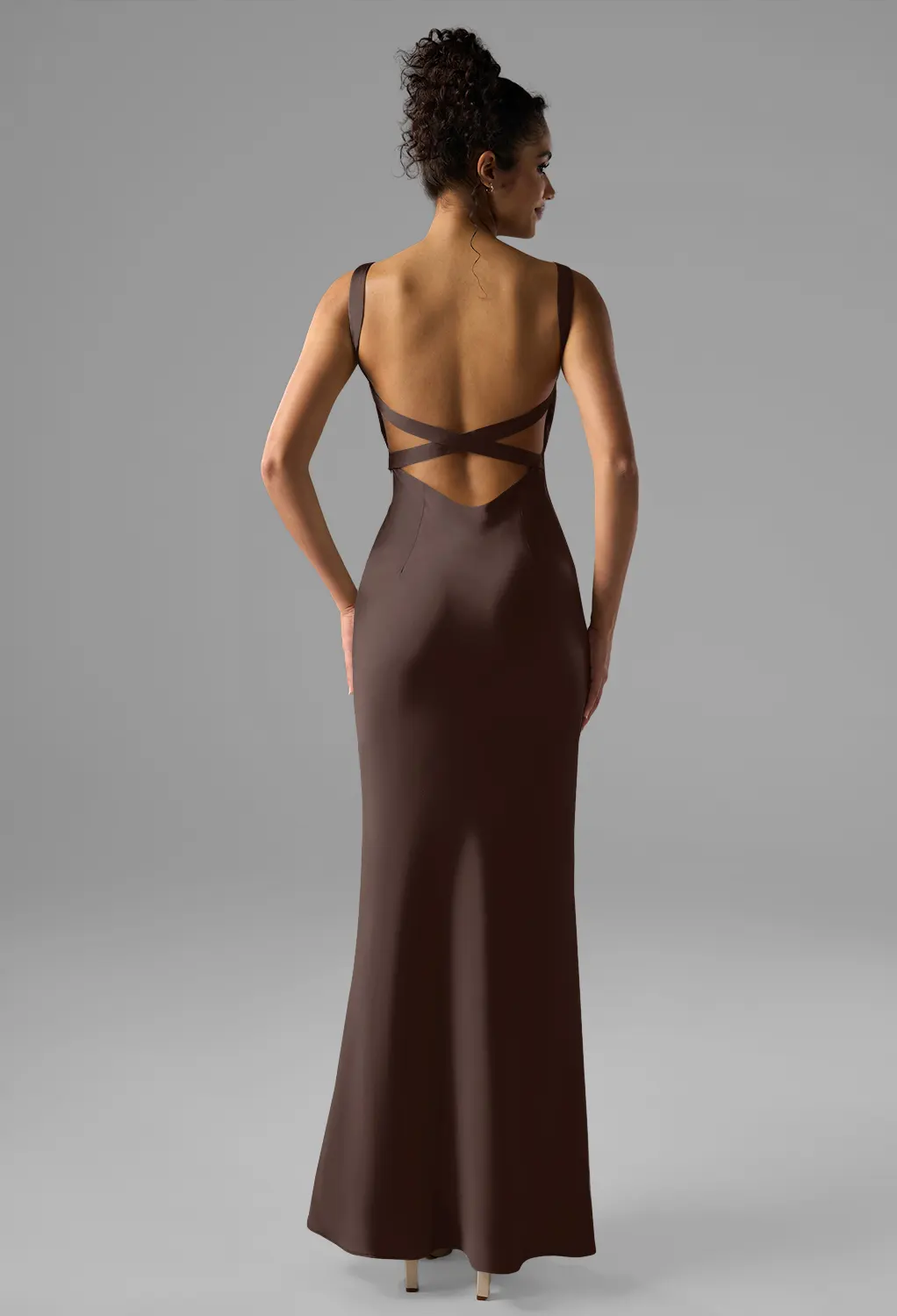 AW Sapota Dress Rose Quartz Satin Charmeuse Hi Lo V Neck Bridesmaid