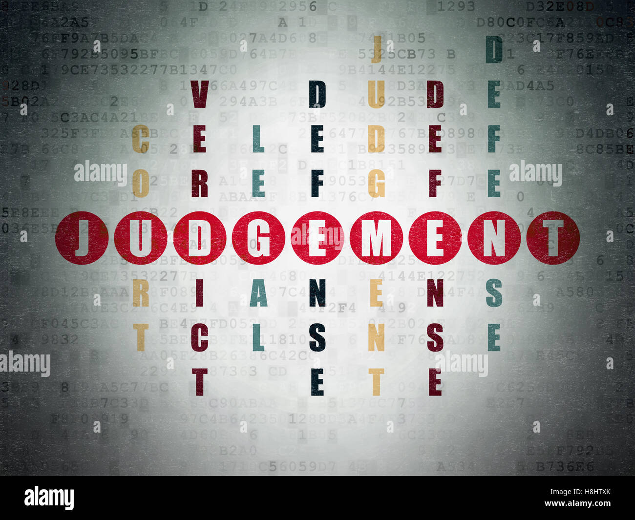 Law concept: Glowing word Judgement in solving Crossword Puzzle in