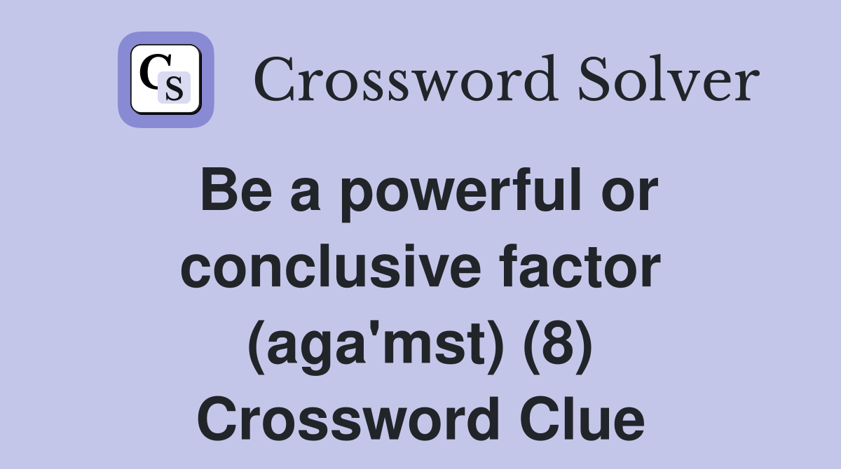 Be a powerful or conclusive factor (aga #39 mst) (8) Crossword Clue