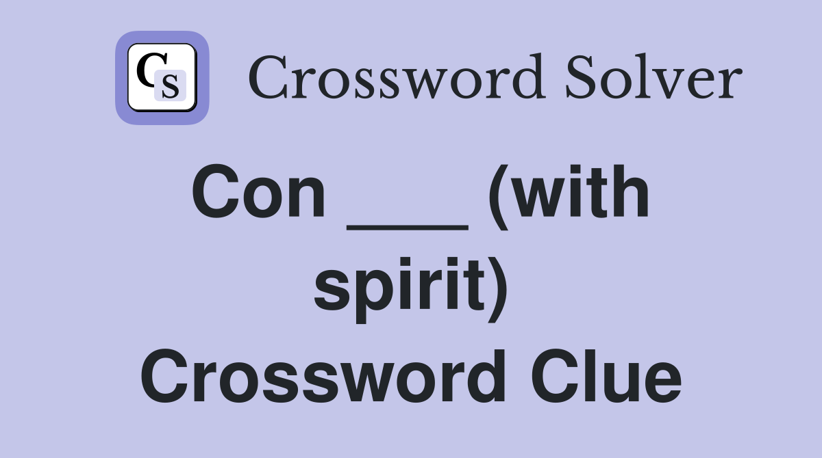 Con (with spirit) Crossword Clue Answers Crossword Solver