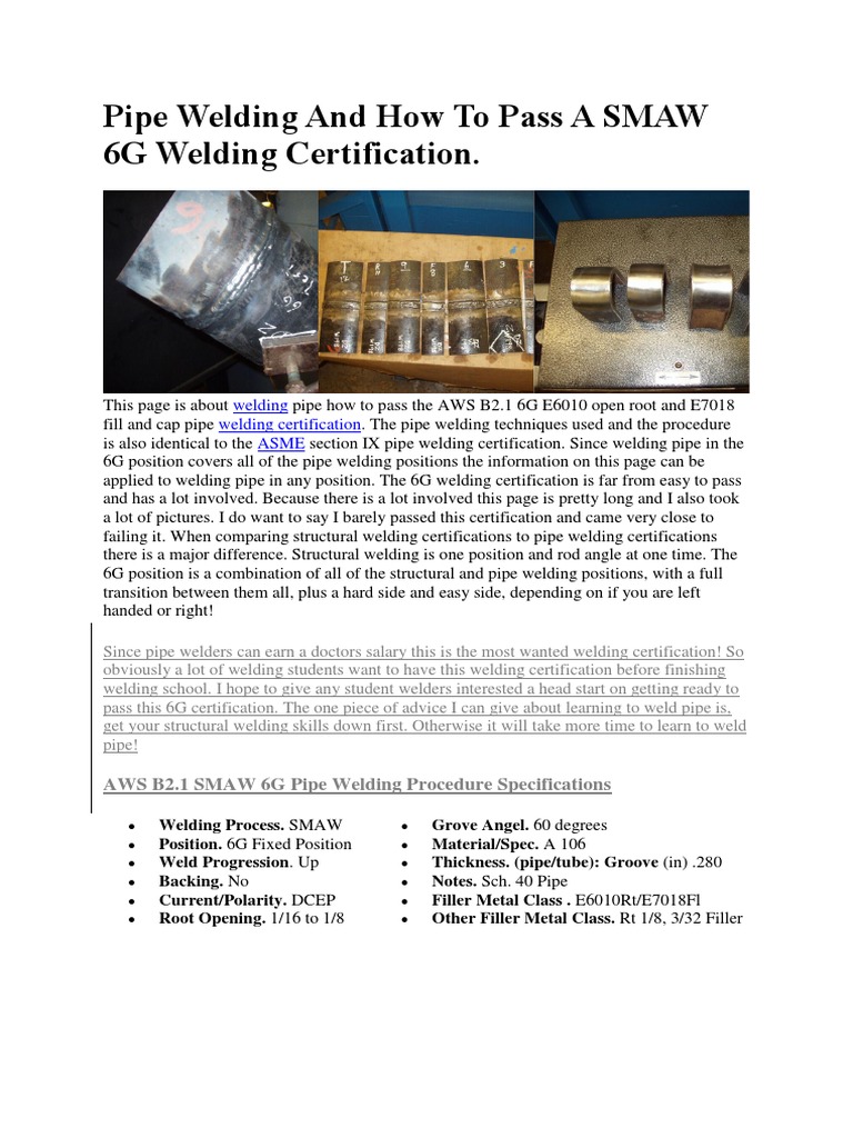 Pipe Welding Guide: Here #39 s How to Pass a SMAW 6G Welding Certification