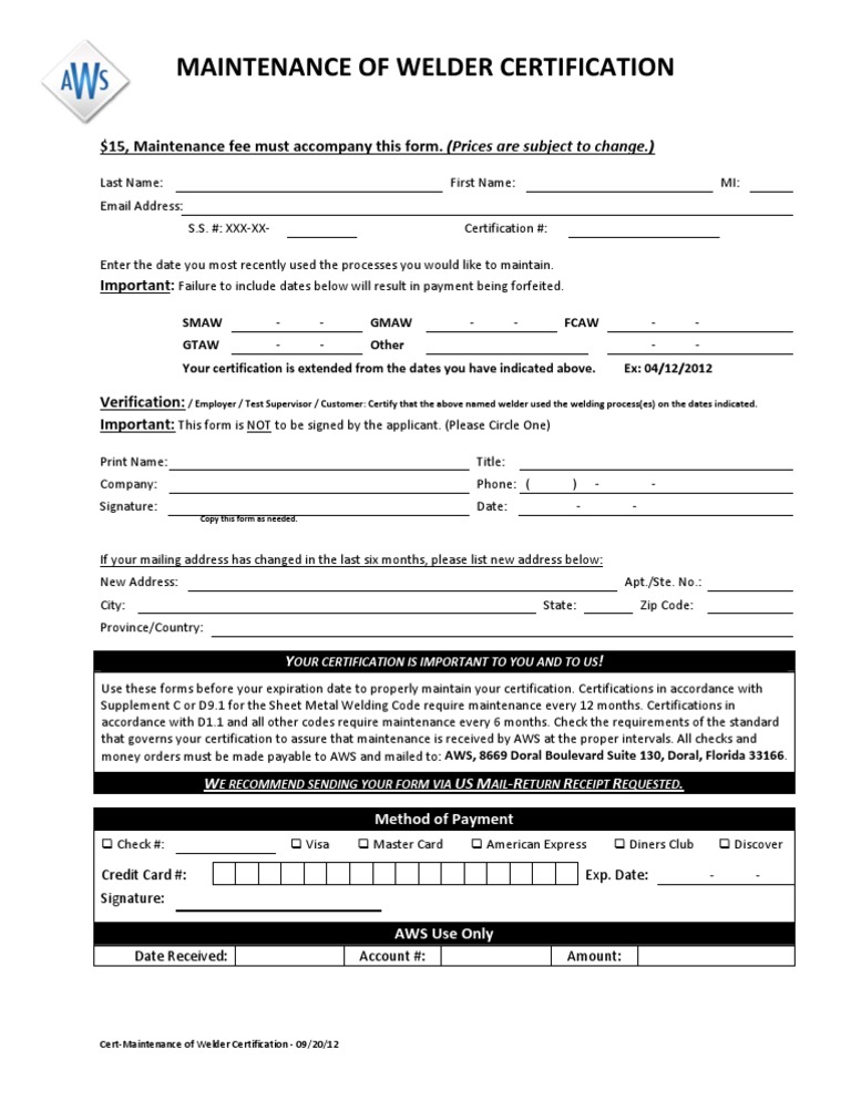 Aws Welding Certification Renewal Form