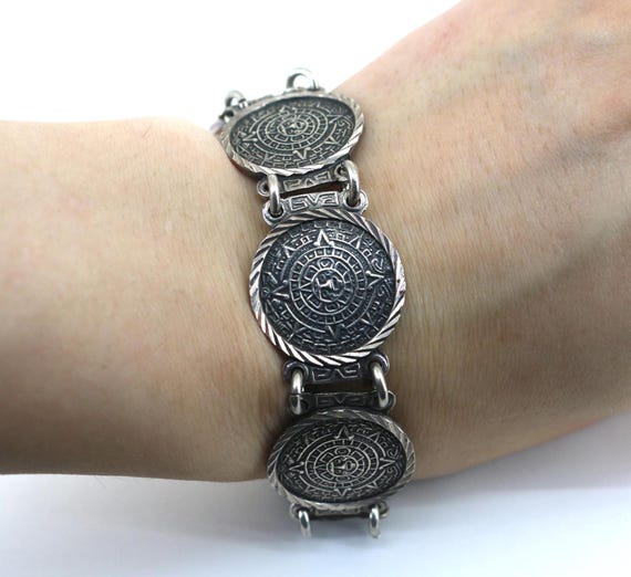 Vintage Mexico Aztec Mayan Calendar Chain Open Box Cl Gem