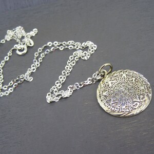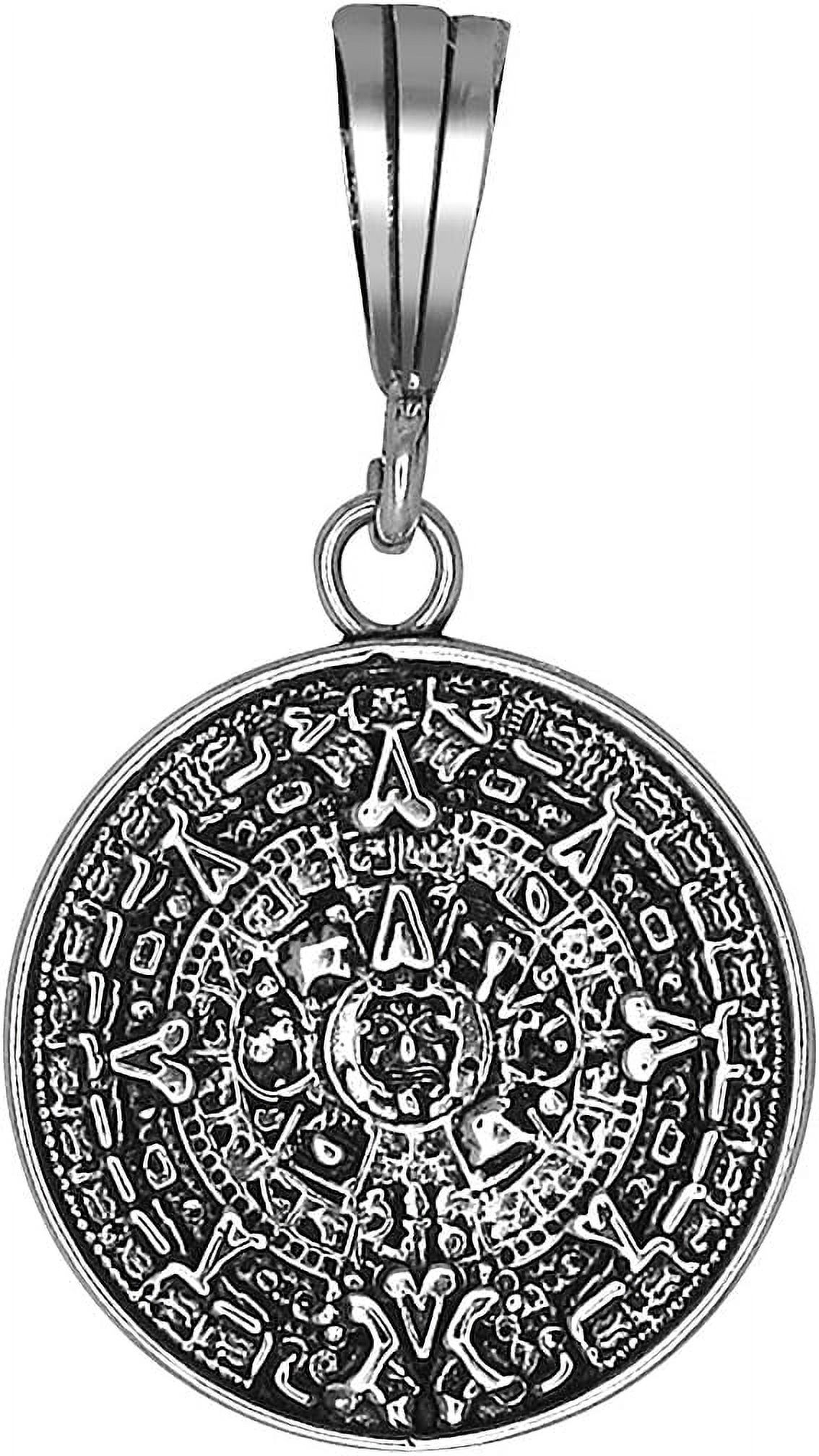 Sterling Silver Aztec Calendar Charm Pendant Necklace Antique Finish