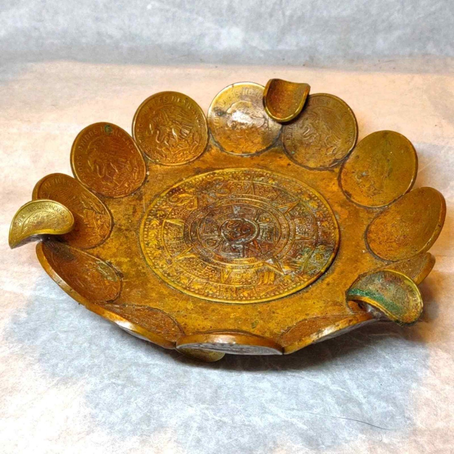 1945 1970s Antique Aztec Calendar copper trinket tray or ashtray