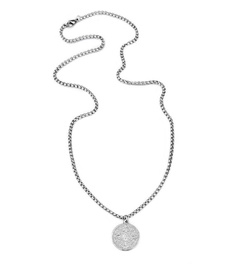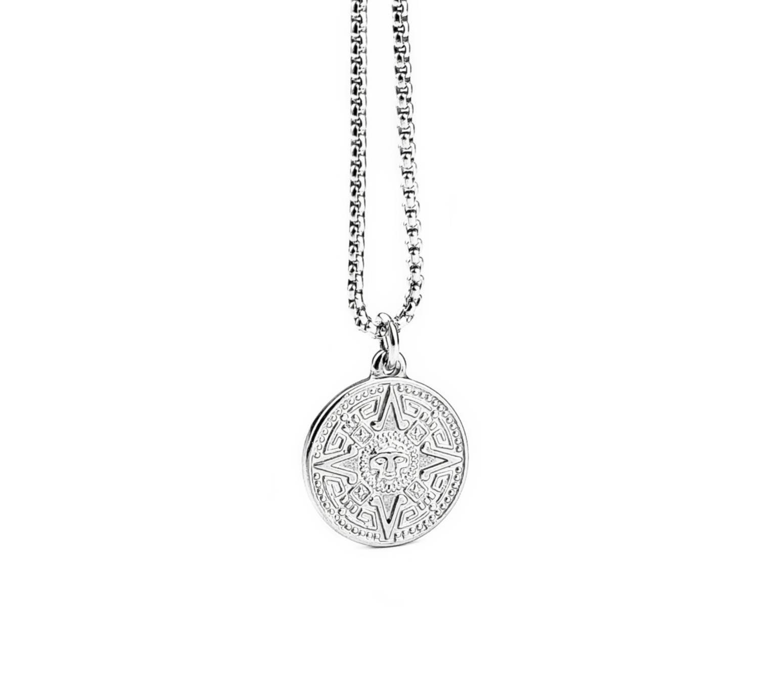 Men #39 s AZTEC CALENDAR MEDALLION Necklace Men #39 s Silver Stainless Steel